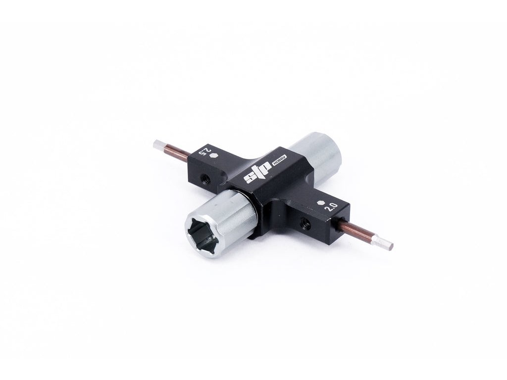 Prop Tool 4 v 1 (2 a 2,5 mm) Tento víceúčelový prop nástroj 4 v 1 od STPHobby je dodáván s 5mm šroubovákem pro prop matici a šestihrannými ovladači M2/M2.5 nebo M1.5/M2, které vám pomohou s vašimi potřebami FPV! Specifikace: Model: M2/M2.5 Rozměry: 50 x 70 mm