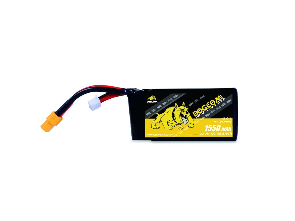 Battery DOGCOM 1550mAh 6S 22.2V 160C LiPo XT60 The DOGCOM 1550mAh 6S 160C LiPo battery is designed for high-performance FPV drones, delivering strong and stable power output for demanding flights. With high discharge capability and low internal resistance, it ensures consistent performance, longer flight life, and reliable power delivery. Ideal for freestyle, racing, and professional FPV applications. Features: - High discharge capability for powerful and responsive performance - Stable voltage output for consistent flight behavior - Low internal resistance for improved efficiency and longer lifespan - High capacity in a compact size for extended flight time - Durable construction for reliable use in demanding conditions - No memory effect for flexible charging and usage - Suitable for FPV drones and various RC applications Specifications: Brand: DOGCOM Capacity: 1550 mAh Configuration: 6S1P (22.2 V) Cells: 6 Continuous Discharge Rate: 160C Max Discharge Rate: 320C Energy: 34.41 Wh Dimensions: 43x38x78 mm Weight: approx. 260 g Charge Connector: JST-XHR Discharge Connector: XT60 Package Includes: 1x Battery DOGCOM 1550mAh 6S 22.2V 160C LiPo XT60