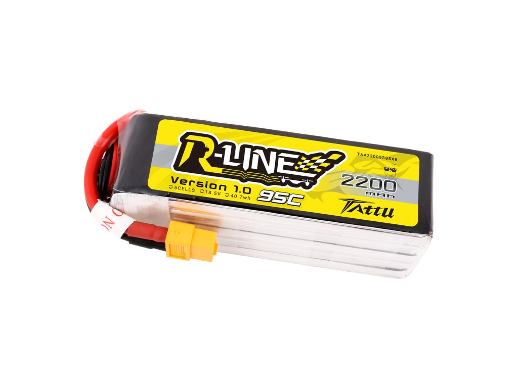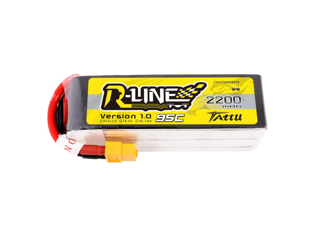Battery Tattu LiPo R-Line 5S1P 2200mah 95C XT60 The Tattu R-Line 5S 2200mAh 95C is a high-performance LiPo battery engineered for demanding FPV pilots who need reliable power, long lifespan, and consistent output. Designed for 7" long-range quads and high-load racing builds, it delivers exceptional punch and stability even during aggressive maneuvers. As part of the R-Line series—created specifically for professional FPV competitions—it offers superior capacity, lower internal resistance, and cooler running temperatures compared to standard LiPos. This pack ensures smooth voltage delivery and maximum efficiency, making it ideal for pilots seeking competitive-grade performance. Features: - High-quality cells provide reliable, stable power for long-range and racing FPV drones. - Advanced stacking technology ensures true 2200mAh capacity with improved consistency. - Designed for professional FPV racing with extremely high discharge performance. - Cooler operating temperatures extend both lifespan and sustained performance. - No memory effect—battery maintains peak performance over many cycles. Specification: Capacity: 2200mAh Configuration: 5S1P (18.5V) Discharge Rate: 95C Connector: XT60 Weight: 282g (±20g) Dimensions: 106x34x37mm Cell Type: LiPo Designed for: 7" long-range & spec racing drones Package includes: 1x Battery Tattu LiPo R-Line 5S1P 2200mah 95C XT60