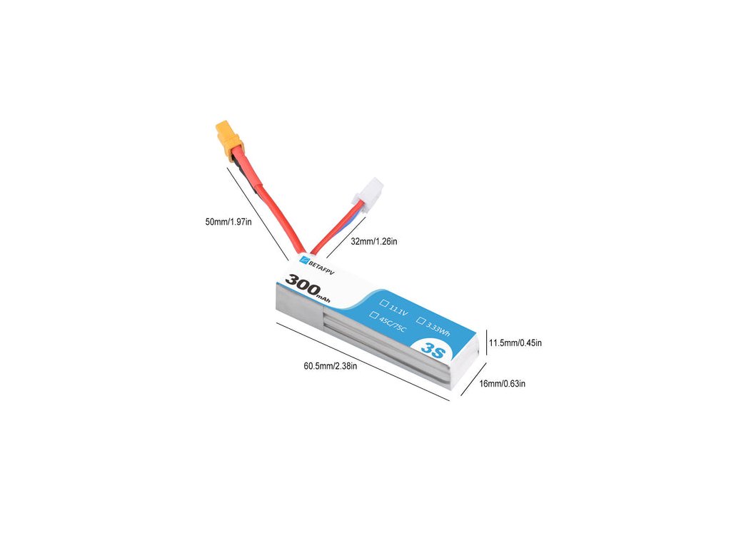 Battery BETAFPV LiPo 3S 11.1V 300mAh 45C S-Version XT30 (2PCS)