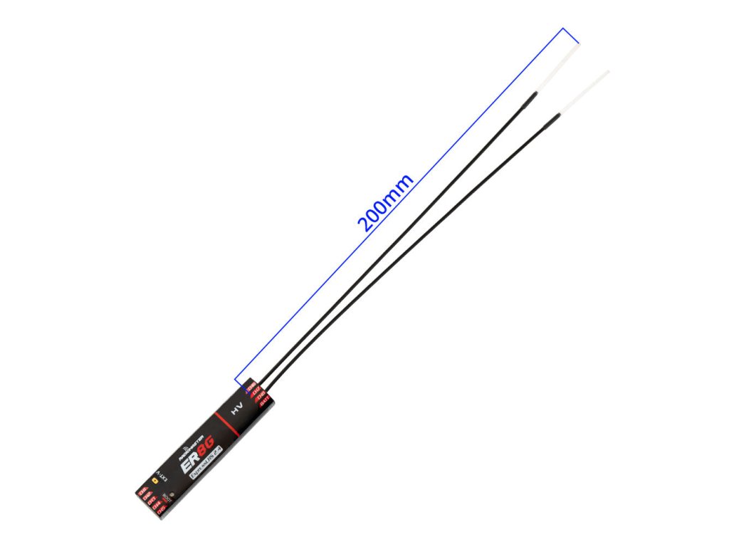 Der ER8G Empfänger wurde speziell für Segelflieger entwickelt, die einen kompakten und schlanken Empfänger benötigen. Er kann bis zu 8 Servos ansteuern und verfügt über eine eingebaute Empfänger-Spannungs-Telemetrie und Flugakku-Telemetrie mit der Fähigkeit, automatisch zu erkennen, welcher Spannungseingang zu verwenden ist (es kann immer nur ein Spannungseingang verwendet werden). Der ER8G verfügt über eine Dual-Antenne mit einer Telemetrieleistung von bis zu 100mw und kann mit einem 1S Lipo-Empfängerakku verwendet werden.