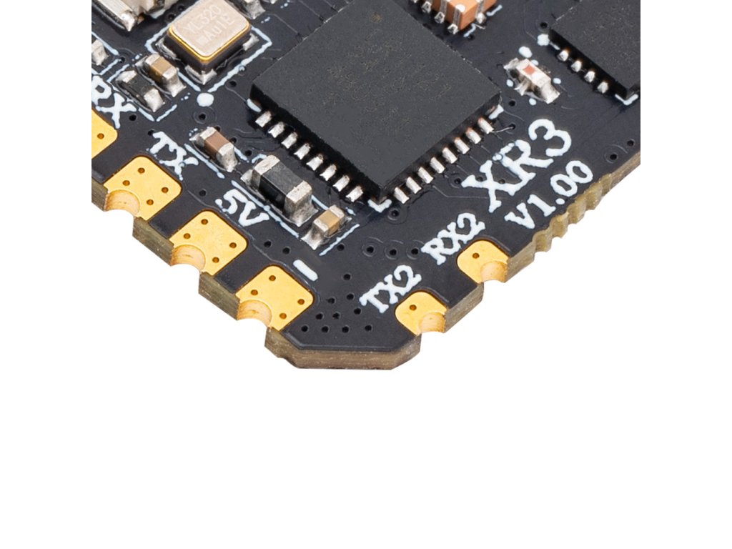 Empfänger RadioMaster XR3 Nano Multi-Frequenz 868/915 MHz Diversity Der XR3-Empfänger ist ein vielseitiger, ultrakompakter ExpressLRS-Empfänger mit einer Größe von nur 20 x 15 mm. Er wird mit dem fortschrittlichen Transceiver Semtech LR1121 der dritten Generation betrieben und arbeitet im 868/915-MHz-Band. Der XR3 bietet eine außergewöhnliche Reichweite und Empfindlichkeit in einem kleinen, leichten Gehäuse – perfekt für jeden Aufbau. Dank der Zuverlässigkeit von ExpressLRS können Sie sich ganz auf das Fliegen konzentrieren, ohne sich um die Verbindungsqualität sorgen zu müssen. Der XR3 wurde für Komfort entwickelt und verfügt über integriertes Wi-Fi für eine mühelose Konfiguration und Firmware-Updates. Über eine intuitive WebUI auf Ihrem PC oder Mobilgerät können Sie ganz einfach auf die Einstellungen zugreifen und diese verwalten. Der XR3-Empfänger verfügt über einen Skyworks RFX2401C mit einem LNA für verbesserte Empfängerleistung, einen PA mit bis zu 100 mW Telemetrie-Leistung und Antennenumschaltung für Antennendiversität. Merkmale - Antennendiversität für verbesserte Signalstabilität und Reichweite - ExpressLRS Sub-G 868/915 MHz - Hochleistungs-MCU ESP32C3 - Semtech LR1121 Transceiver - Zusätzlicher UART-Port - Sekundärer Port für erweiterte Funktionen - Abgesetzte Pads für einfaches Löten Spezifikationen: Artikel: XR3 Nano-Multifrequenz-Antennen-Diversity-ExpressLRS-Empfänger Typ: ISM2.4, FCC915 MCU: ESP32C3 HF-Chip: LR1121 HF-Anschluss: IPEX-1 X 2 Antenne: 2x T-Antenne 868/915 MHz Frequenzbereich: Sub-G 868/915 MHz Telemetrie-Leistung: 100 mW Maximale Empfangsaktualisierungsrate: DK500 Hz / K1000 Hz Minimale Empfänger-Aktualisierungsrate: 25 Hz Betriebsspannung: DC 4,5 - 8,4 V Gewicht: 1,3 g (ohne Antenne) Abmessungen: 22 x 15 x 4 mm Firmware-Version: ExpressLRS v3.5.1 vorinstalliert FW-Ziel: RadioMaster XR3 868/915 MHz Diversity RX Bus-Schnittstelle 1: CRSF Bus-Schnittstelle 2: UART Lieferumfang: 1x XR3 Nano-Multifrequenz-Antennen-Diversity-ExpressLRS-Empfänger 2x T-Antenne 868/915 MHz 1x CRSF-Kabel 3x Schrumpfschlauch
