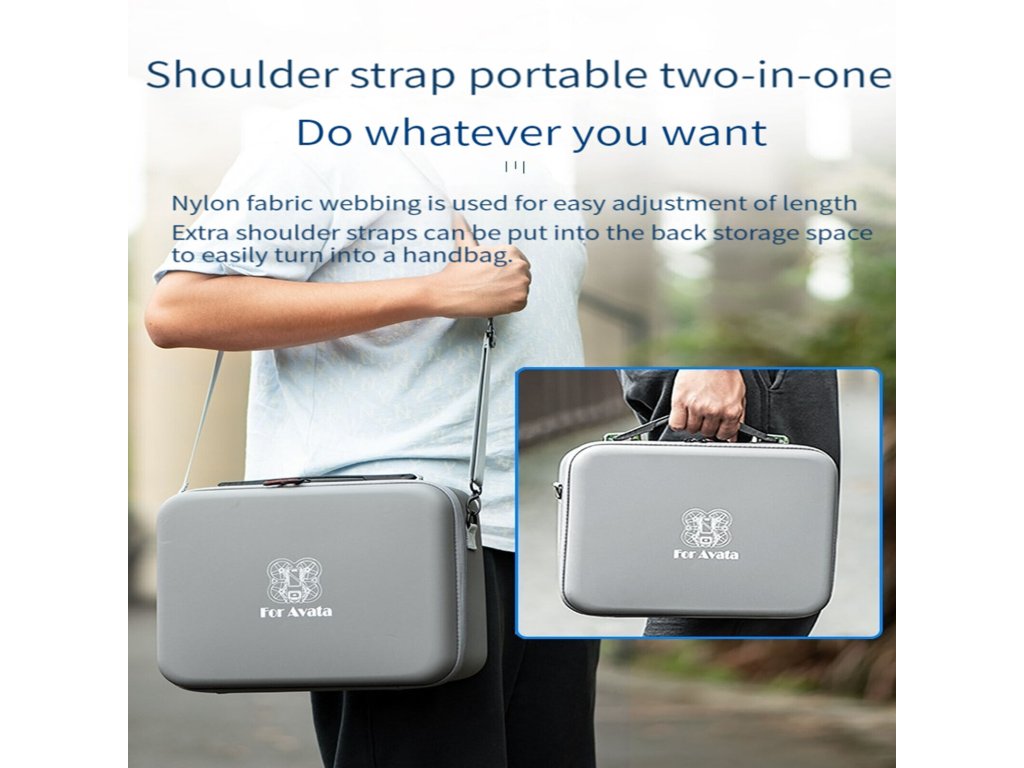 Tragetasche für DJI Avata (Neue Pro-View Combo, Explorer Combo) Wasserdichte Tragetasche mit Schultergurt, speziell für DJI Avata (New Pro-View Combo, Explorer Combo) entwickelt. Schultergurt aus Nylon-Gurtband, einfach in der Länge zu verstellen, leicht und verschleißfest. In dieser Tragetasche können verstaut werden: DJI Avata Drohne, Goggles, Goggles Batterien, RC Motion 2, Flugbatterien, Propeller, Kabel und anderes kleines Zubehör. Farbe: Gray Nettogewicht: 865 g Bruttogewicht: 1165 g Größe: 330x300x125 mm