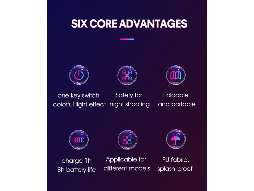 DM55cm LED Landeplatz für DJI Avata Das Universal 55CM runde Landepad mit LED-Licht ist für den sicheren Start und die Landung von Drohnen konzipiert. Es ist zum Schutz vor möglicher Verschmutzung und Eindringen von Wasser, Gras oder Staub gemacht. Bunte Lichteffekte mit Ein-Klick-Schaltung sind perfekt für Nachtflüge. Das LED-Landepad ist tragbar, einfach zu bedienen und schnell zusammenklappbar, ohne zu beschädigen. Anwendbar für: Alle DJI Drohnen Material: ABS+PU Farbe: Orange/Blau Größe: 55x55 cm Akku-Kapazität: 450mAH Nettogewicht: 374.4g