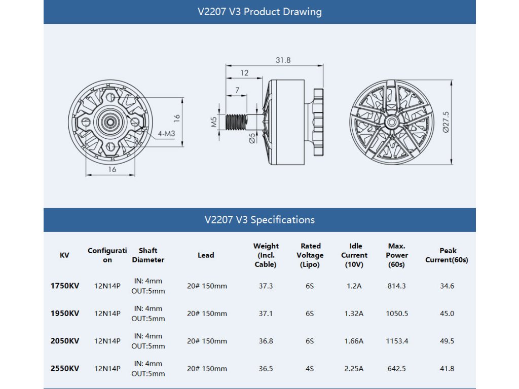 V2207 V3.0 5 "Freestyle Fpv Renndrohne Motor 6S KV1950 Der T-Motor Velox V2207 V3 Motor ist ein bedeutendes Upgrade der V2 Serie und bietet verbesserte Materialien und Design ohne Kompromisse bei der Erschwinglichkeit. Spezifikationen Artikel: T-Motor Velox V2207 V3 1950KV Farbe: Grün Konfiguration: 12N14P Wellen-Durchmesser: 5mm Leitung: 20# 150mm Gewicht (einschließlich Kabel): 37.1g Nennspannung: 6S Leerlaufstrom (10V): 1.32A Max. Leistung (60S): 1050.5W Spitzenstrom (10s): 45A Paket enthält: 1x T-Motor Velox V2207 V3 - 1950KV 1x Hardware-Satz