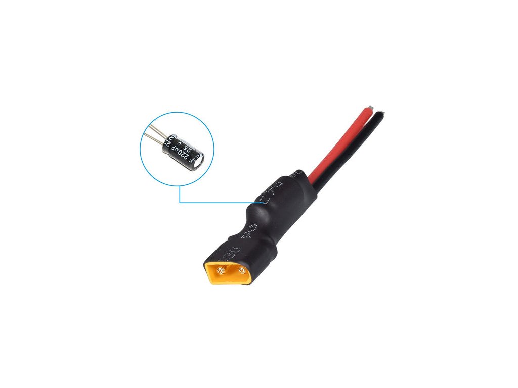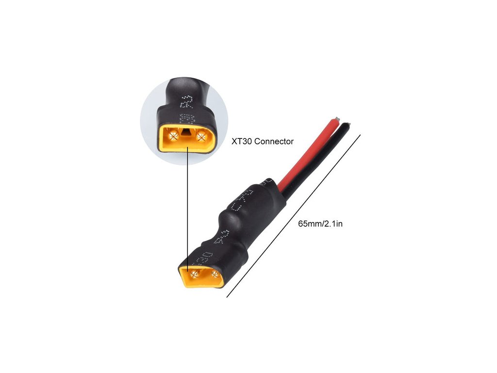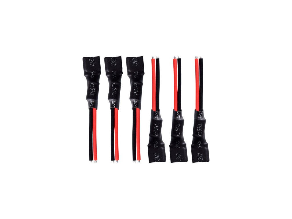 4S Whoop Cable Pigtail (XT30) Power Cable with XT30 connector is designed for 4S whoop drones. Soldered with a capacitor specified at 25V/220μF/20%, it serves as a safeguard for the ESC board, minimizing the risk of defects caused by instantaneous high voltage. With support for up to 4S power input, this cable is an ideal fit for setups like F4 V2 4S FC and F4 2-4S AIO FC on Beta85X 4S. Specifications: Power: 2-4S Weight: 3.2g/pc Connector: XT30 Internal Material: Nylon/PA Body Material: Gold-plated copper Length: 65mm (Including the plug) Temperature resistance: -20°C-120°C Capacitor specification: 25V/220μF/20% Wire: 18AWG Heatproof Soft Silicone Cable Adapt FC: F4 V2 4S FC, F4 2-4S AIO FC Adapt Drone: Beta85X 4S, Beta85X 4S HD, Beta85X 4K Whoop Drone Package Includes: 6 x 4S Whoop Power Cable (XT30)
