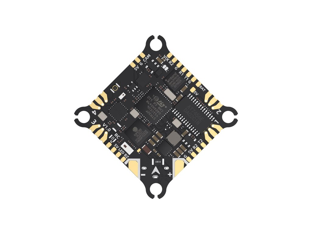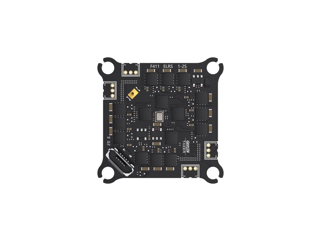 TAKER F411-12A-E 1-2S AIO is a lightweight and highly integrated flight control system, weighing only 4.2g. It is suitable for 1.2-2-inch Whoop models or 3-inch toothpick models.