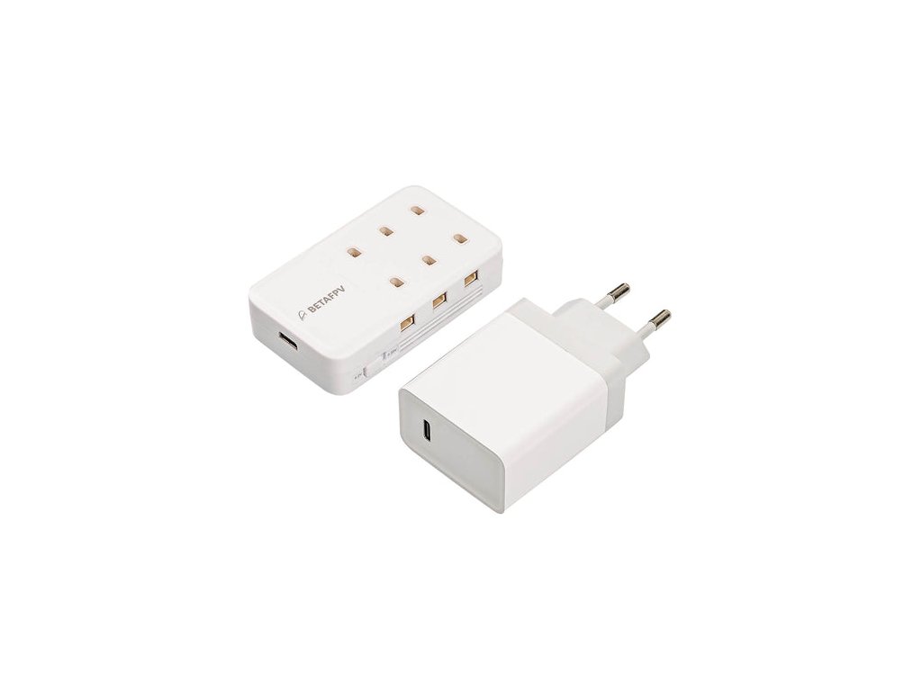 BETAFPV 6 port 1S Charger V2 (With EU Adapter) Key features: - With BT2.0/PH2.0 two types of battery ports, the charger allows charging BT2.0 and PH2.0 batteries at the same time. - By supporting multi-charging protocols including PD3.0/QC3.0/BC1.2, every port's charging current can reach 1A, which makes charging faster. - This portable 30W Type-C power adapter offers fast, efficient charging at home, or on the go. - The power adapter is compatible with any USB‑C-enabled device, you can also pair it with other devices to take advantage of the fast-charging feature. Specifications: Item: 6 Ports 1S Battery Charger & EU Adapter Input connector: Type-C Input voltage range: 5-12V Max input power: 30W Max input current: 2.5A Max charging current: 1A (Single-port) Support battery connector: BT2.0&PH2.0 Charging protocol: PD3.0/QC3.0 (5V/9V/12V) /BC1.2 Battery Type: LiHV 4.35V Dimensions: 79x46x19mm Package includes: 1 x 6 Ports 1S Battery Charger 1 x EU Power Adapter 1 x Type-C to Type-C cable 1 x User manual