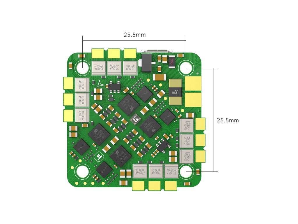 BLITZ Whoop F7 AIO V1.1 Features: - Separated Flight Control board to minimize electrical gyro noise; - Pass-through DJI O3 and Caddx Vista/Polar Connector; - FC PCB can be disassembled from the ESC PCB; - Repair allowed. FC Specifications: MCU: BGA-STM32F745 Gyro: ICM42688 Blackbox: 16MB Onboard Flash BEC output: 5V 2.5A WS2812 LED Strip: Yes Buzzer: Yes Barometer: DPS310 Connector: Micro-USB OSD: IFLIGHT OSD (AT745E) FC Firmware: IFLIGHT_BLITZ_F7_AIO Mounting pattern: 25.5*25.5mm φ3mm Dimensions: 35*35mm Weight: 10.5g BEC: 5V 2A / 3A Input voltage: 2-6S, support LIHV battery Smartaudio / IRC Tramp VTX protocol supported ESC Specifications: ESC MCU: BB21 Driver: FD6288 Input voltage: 2-6S Support LIHV battery Output current: 55A, peak value 65A (10 seconds) ESC firmware: Q-H-40 - Bluejay, 0.16, 24kHz Current sensor: ratio 200 (1/10mV/A) BEC: NO ESC Telemetry: NO Bidirectional DShot: Yes(need to use Bluejay firmware) Supports DShot DShot150/300/600/MultiShot/ OneShot etc. Package includes: 1 x BLITZ F7 AIO 2 x Capacitor 470uF/35V 1 x XT30U Male 18AWG cable 70mm 1 x 1.0-7P cable 50mm-28mm 1 x 1.0-7P cable 50mm 4 x M2 silicon grommets 8 x M2*12mm screws 8 x M2 Transparent Nylon Nut 10 x 0.8mm black Heat shrink tube 10mm
