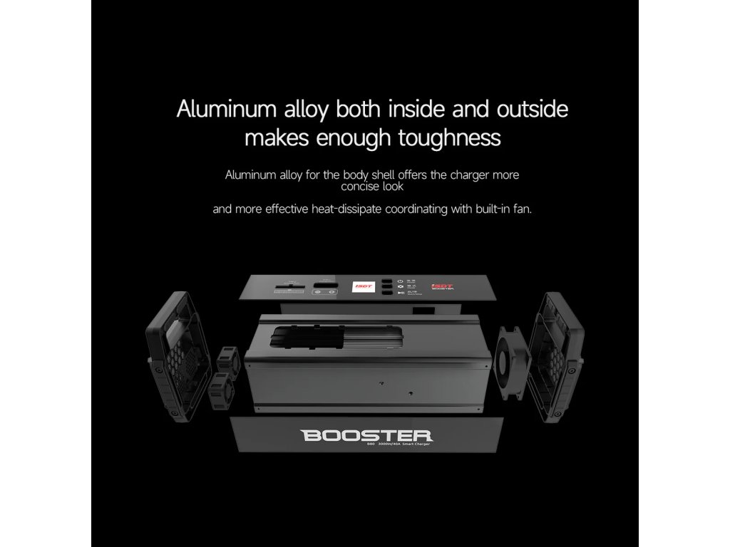 - Made with aluminum alloy for both the inner components and outer shell, ensuring durability and effective heat dissipation. It is complemented by a built-in fan for cooling during high-power operations.