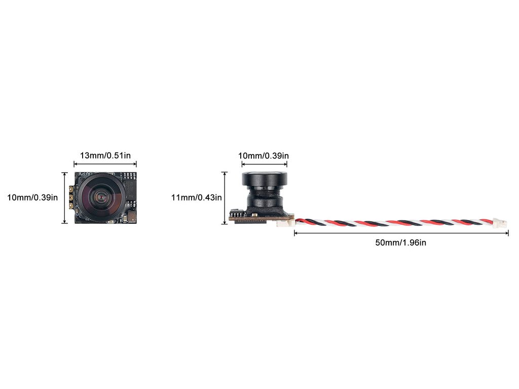 The C02 Micro Camera is designed for micro whoop drones. Boasting a 1/4'' CMOS sensor, 2.1mm lens, and 1200TVL resolution, it ensures excellent image quality with minimal latency at a weight of just 1.4g. Featuring a JST-0.8 connector, the C02 camera adopts a plug-and-play design, eliminating the need for soldering during installation. Ideal for Cetus series drones, BETAFPV F4 1S AIO FC, BETAFPV M03 VTX, and NBD BeeBrain flight controllers. Safeguarded by a micro canopy, this camera remains resilient even in hard crashes.