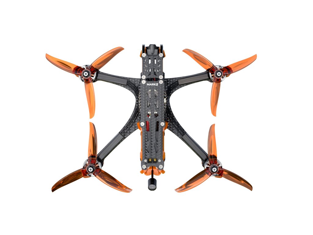 MARK5 DC O3 ELRS 2.4G (4S/Orange) The upgraded camera aluminum alloy side plate 7075-T6 aluminum alloy is strong and durable. It can be fully adapted to DJI’s new O3 air unit camera, with a field of view (FOV) of 155°, and the recording specification can support up to 4K 60FPS. Specially designed TPU fixing parts for the O3 VTX module and equipped with an air inlet cooling port, which is conducive to adequate heat dissipation at the air unit. MARK5 O3 uses GEPRC’s latest SPAN F722-BT-HD V2 stack, with ICM 42688P gyroscope for smooth flight, redundant performance, and ports. Supports Bluetooth wireless connection for tuning. The SPAN BLHeli_32 50A ESC with GEPRC 2107.5 motor, and uses new strong power Gemfan 5136 propellers. The DC structure has a wide and unobstructed viewing angle during flight, which is suitable for O3 internal video recording and direct output. MARK5 O3 is shipped with two different camera mounts, which can be mounted with a full range of GP action cameras, as well as Naked camera GP 8/10, Insta 360 GO2 and Caddx Peanut, etc. Specifications Model: MARK5 DC HD O3 Quadcopter Frame: GEP-MK5D O3/GEP-MK5X O3 Wheelbase: 225mm Top plate: 2.5mm Bottom plate: 2.5mm Arm plate: 5mm FC system: SPAN F722-BT-HD V2 MCU: STM32F722 Gyro: 42688-P (SPI) OSD: BetaFlight OSD w/AT7456E chip ESC: SPAN G50A BLHeli_32 4IN1 50A 4-6S ESC VTX: DJI O3 Air Unit Camera: DJI O3 Propeller: Gemfan 5136 Antenna: DJI O3 antenna Motor: SPEEDX2 2107.5-1960KV (6S Version) / SPEEDX2 2107.5-2450KV (4S Version) Weight: MK5D - 426.0g, MK5X - 404.9g (MARK5 HD O3 including 3D printed parts) Receiver: PNP, Frsky R-XSR, TBS Nano RX, ELRS 2.4G Recommended Battery: LiPo 4S 1300mAh-1800mAh (4S Version) / LiPo 6S 1050mAh-1550mAh (6S Version)