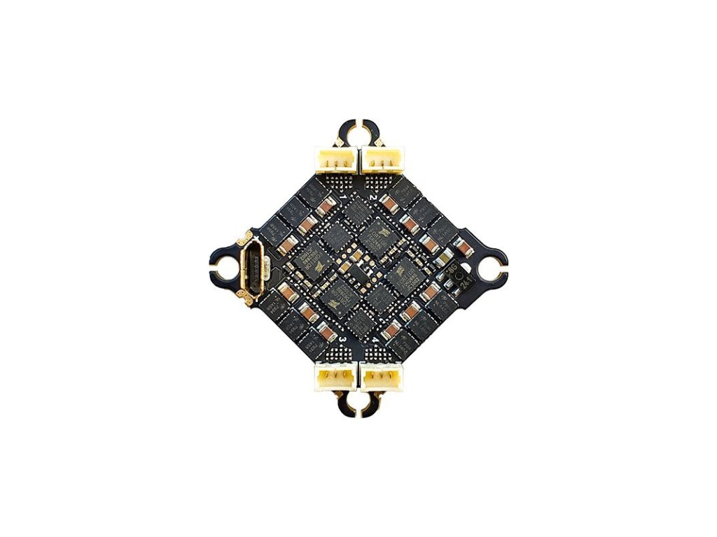 TAKER F411 8Bit 12A AIO Without ELRS The TAKER F411 8Bit 12A AIO is designed to provide an efficient and lightweight solution for mini FPV drones, making it suitable for various flying styles, including racing and freestyle. It includes an ICM-42688-P gyro for precise and responsive flying, and supports 2-4S batteries. The AIO board also comes with a 16MB onboard black box for parameter adjustment. Specifications: Model: TAKER F411 8Bit 12A AIO (without ELRS receiver) MCU: STM32F411 IMU: ICM42688P Firmware Target: GEPRC_F411_SX1280 OSD: BetaFlight OSD with AT7456E chip UART Ports: R1 T1R2 T2 Reverse Port: NR2 Buzzer: YES LED: YES USB Port: micro USB ESC MCU: BB21F16G Black Box: 16Mb onboard flash memory Continuous Current: 12A Peak Current: 13A Input: 2-4S ESC Protocol: Dshot300, Oneshot, Multishot Current Meter: 210 ESC Firmware: G-H-30 – Bluejay, 0.16, 48kHz Size: 31.2×31.2mm Board Mounting Holes: 25.5mm x 25.5mm hole, M2 hole Weight: 7g