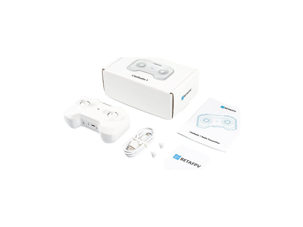 LiteRadio 1 Radio Transmitter-Frsky (Mode 2) The LiteRadio 1 Radio Transmitter is a compact and portable controller for the FPV. It features an ergonomic design with an anti-slip texture for comfortable handling. This transmitter is suitable for FPV beginners, offering essential functions at an affordable price. It comes with thumb stick ends, providing a flat surface and ample space for thumb control. Additionally, two pinch stick ends are included in the package for users who prefer controlling between fingers and thumbs. With the support of BETAFPV Configurator, you can adjust the channel settings, switch protocol, or upgrade firmware for LiteRadio 1 on the configurator. Built-in CC2500 2.4G system, it supports Futaba S-FHSS/Frsky FCC D16/Frsky LBT D16/Frsky D8 protocols. LiteRadio 1 Radio Transmitter is compatible with many BNF quadcopters with such receivers. Specifications: Item: LiteRadio 1 Radio Transmitter Mode 2 (Left stick throttle) Channel: 8 Frequency Range: 2.4G 2.4G System: CC2500 Support Protocol: Futaba S-FHSS/Frsky FCC D16/Frsky LBT D16/Frsky D8 RF Output Power: 100mW (Frsky) Support Firmware update Support BETAFPV Configurator/Most practice simulator LED Light: Green power on/Red flashing twice with buzzer warning (lower voltage less than 3.5V)/Blue Normal Size: 130x78x57mm Battery: Built-in 1000mAh 1S Battery Transmission Distance: 80m Working Time: About 8 hours Charging Connector: USB 3.0 Type-C Package: 1 x LiteRadio 1 Radio Transmitter 1 x Manual 1 x USB Type-C Cable 2 x Pinch Stick Ends