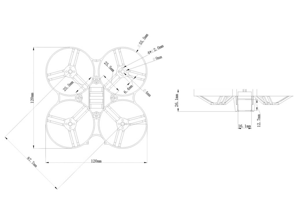 Meteor85 Frame kit (Black) The frame for Meteor85, Meteor85 HD Digital VTX. Features : - The new design frame reserves a battery slot, perfect for the LAVA 2S 450mAh 75C Battery. - The Meteor85 frame’s motor mounting position uses a triangle bilateral stretch structure, making the frame more aesthetic. It provides a more durable and smoother flight experience. - The ultra-light and durable frame is PP material only 11.32g, which can match the F4 1-2S 12A AIO Brushless Flight Controller. - The frame is suitable with 2" propellers like Gemfan 2015 2-Blade, and Gemfan 2020 4-Blade props. - Recommend using BETAFPV canopy for nano HD camera for Caddx ant camera, or other nano cameras. It can also match the lighter BETAFPV canopy for a micro camera and install with a C02 Camera, C03 Camera, and M03 5.8G VTX. Specification Material: PP Wheelbase: 87.7mm Motor mounting hole: 110x motors, such as 1103 11000KV motors FC mounting hole: fully compatible with whoop style FC board mounting pattern, 26mm x 26mm Weight: 11.32g Recommended Parts Propellers: Gemfan 2015 2-Blade Props, Gemfan 2020 4-Blade Props Motors: 1103 11000KV Motors (4 pcs) Batteries: LAVA 2S 450mAh 75C Battery, 450mAh 2S Battery Canopy: Micro Canopy for Nano HD Camera, Micro Canopy Screws: Meteor Series Motor Fixing Screws Pack (40PCS) FC: F4 1-2S 12A FC Package 1 * Meteor85 Brushless Whoop Frame (Black)