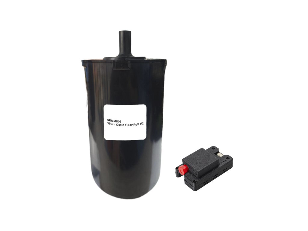Module Pilotix with 30km Optic Fiber Roll SE V2 Fiber optic communication is a reliable and efficient solution for ground, underwater and aerial systems where large amounts of video data need to be transmitted with minimal loss or in the absence of radio communication. The Pilotix Fiber Optic Communication Kit includes a 30-kilometer fiber optic cable and the Sky End SE V2 communication module, ensuring fast and stable data transmission. Features: - Low latency, critical for real-time control. - Immune to radio interference, ensuring 100% uninterrupted communication quality. - High bandwidth, enabling HD video transmission and large data transfers. - No additional drone receiver or video transmission system required. - Secure connection, making it difficult to intercept the signal. This kit is an ideal choice for professional continuous communication and video surveillance applications, especially in challenging environments. Important notes: