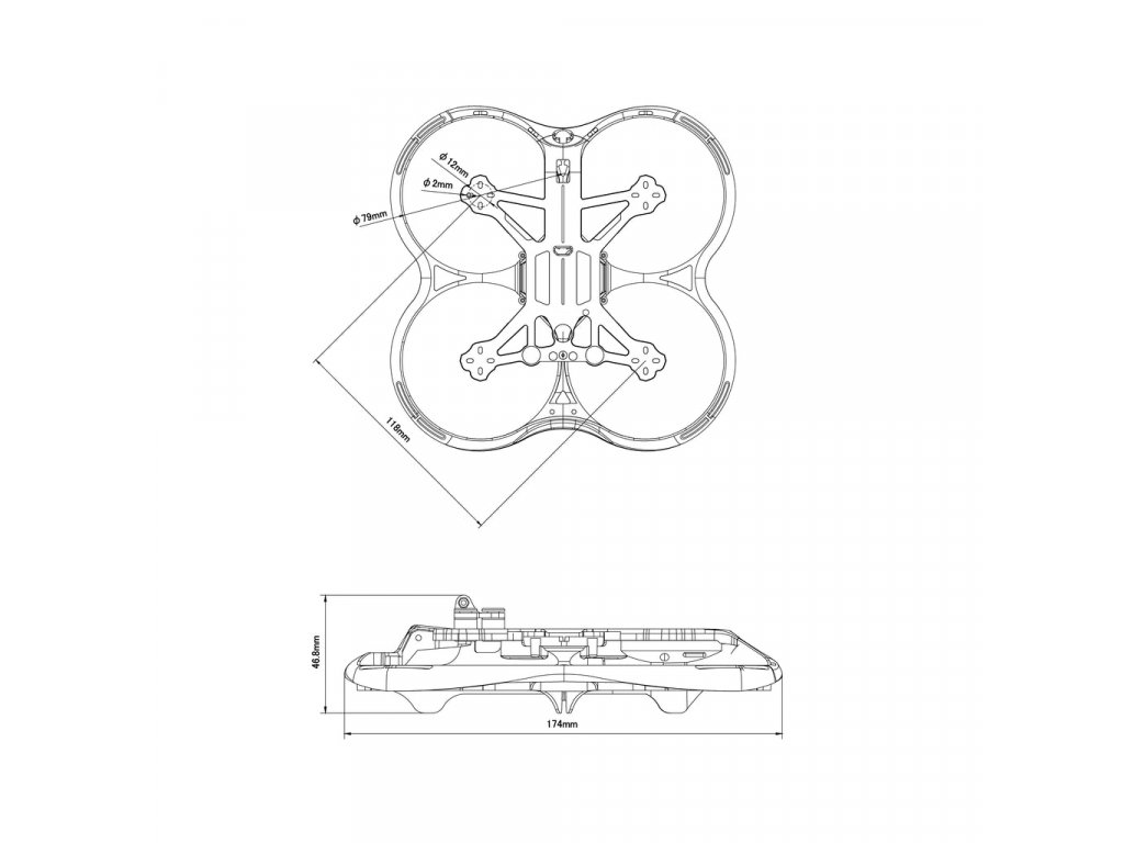 Pavo30 Frame kit The Pavo30 Frame Kit is designed from high-quality PA12 material with a carbon brace enhancing overall durability and functional design. The frame incorporates a shock mitigation system for stabilizing cameras during flight. Specifications: Item: Pavo30 Frame Kit Wheelbase: 120mm Color: Black Material: PA12 Weight: 55.53g (with carbon brace) Recommend Motor: 1505-3400KV motor/1506-3000KV motor Recommend FC: F722 AIO 35A brushless flight controller Recommend Camera: SMO 4K Package 1 x Pavo30 frame 3 x Rubber Dumper 1 x 19mm FPV Camera Mount 1 x 14mm FPV Camera Mount 1 x Spare EVA Foam Tape 1 x Battery strap 1 x Pack of Screws