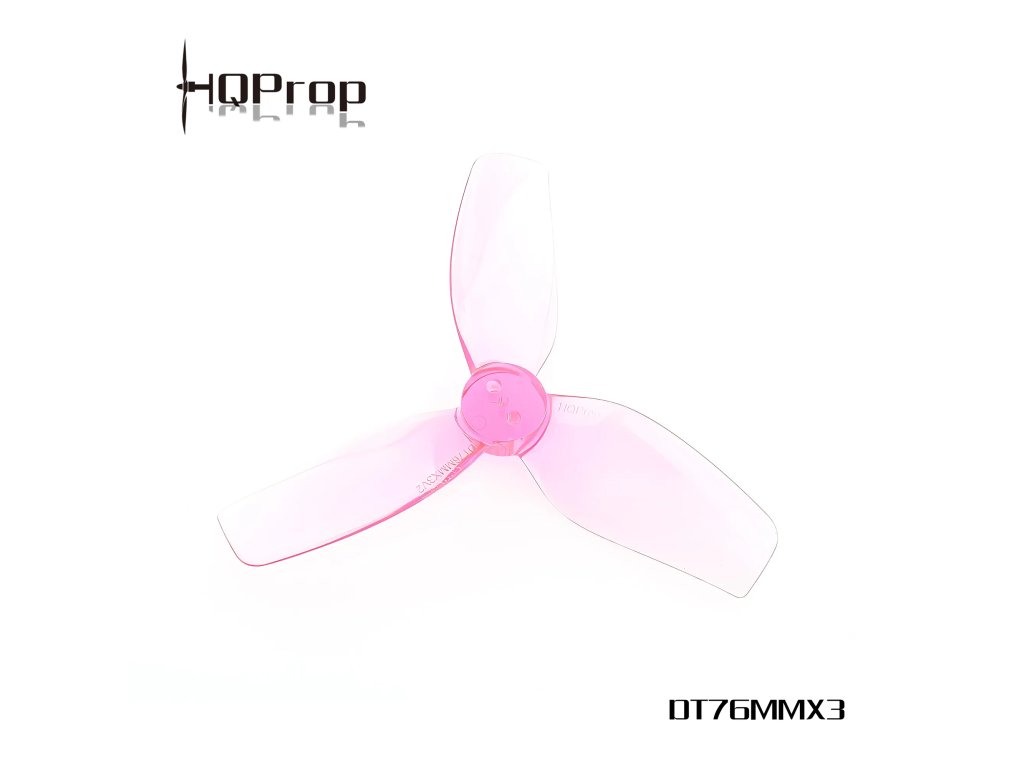 Propellers HQProp Cinewhoop T76MMX3 V2 3-blade 3" Pink The HQProp Cinewhoop T76MMX3 V2 3" propellers are optimized for ducted cinewhoop builds, offering smooth, quiet, and stable flight characteristics. With a 76mm diameter and 3.0 pitch, these 3-blade props provide excellent control and balanced thrust for cinematic indoor or close-range flying. Weighing just 1.65g each, they reduce overall load while ensuring reliable performance. Built from durable polycarbonate, they fit 2mm, 1.5mm, or dual-diameter shafts. Perfect for cinewhoops running 3-inch ducts, this set includes two clockwise and two counter-clockwise propellers to complete your quad setup. Specifications: Propeller Diameter: 76 mm (3 inch) Pitch: 3 Blades: 3 Material: Polycarbonate Weight: 1.65 g (each) Hub Diameter: 10.9 mm Hub Thickness: 4.9 mm Shaft Diameter: 2 mm / 1.5 mm / dual fit Package includes: 2 × CW HQProp T76MMX3 V2 Propellers 2 × CCW HQProp T76MMX3 V2 Propellers