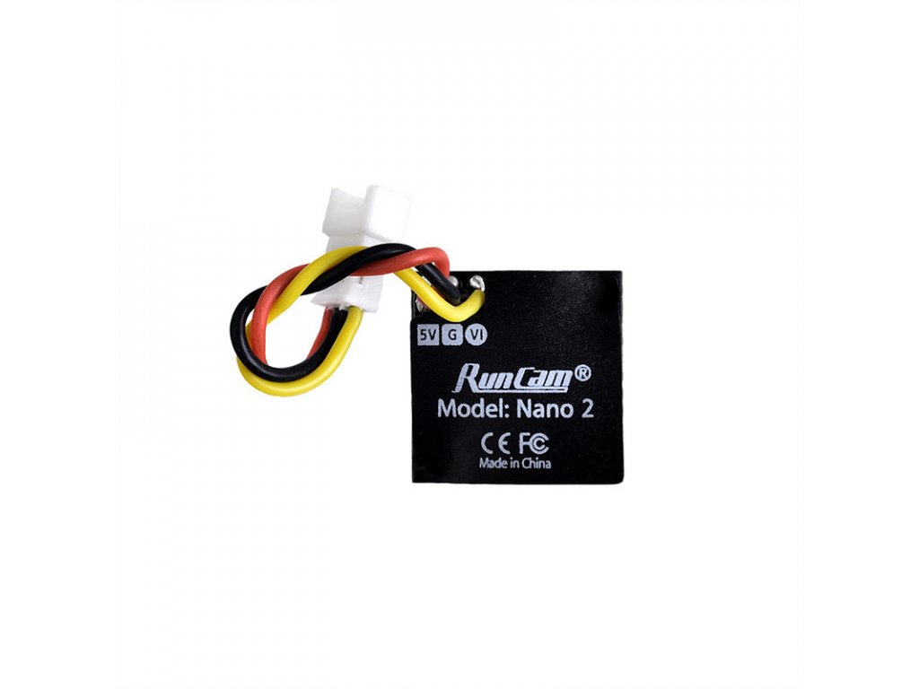 The RunCam Nano 2 The RunCam Nano 2 is one of the world's smallest and best WDR racing cameras. It's 14x14mm dimensions mean its a "nano" size - smaller than a micro camera, so keep that in mind when thinking about mounting options. You won't find a better "nano" camera out there! Choose from 1.8mm or 2.1mm lens options. Specifications Model: RunCam Nano 2 Image Sensor: 1/3" CMOS Horizontal Resolution: 700TVL Lens: 1.8mm (M8) FOV 170° Signal System: PAL/NTSC Non-Switchable S/N Ratio: >50dB Electronic Shutter Speed: Auto Auto Gain Control (AGC): Auto Min. Illumination: 0.01Lux@1.2F D-WDR: Auto Day/Night: Color Power: DC 3-5.5V Current: 110mA@5V 120mA@3.3V Housing Material: ABS Net Weight: 3.2g Dimensions: L14mm*W14mm*H16mm