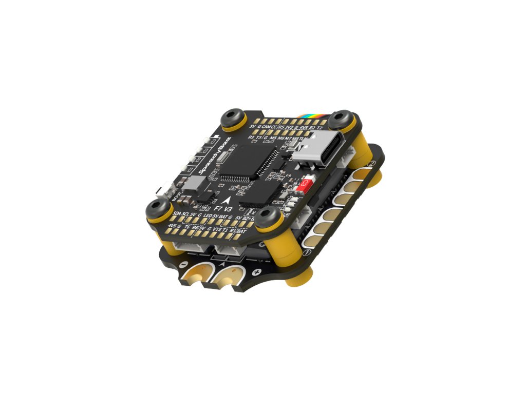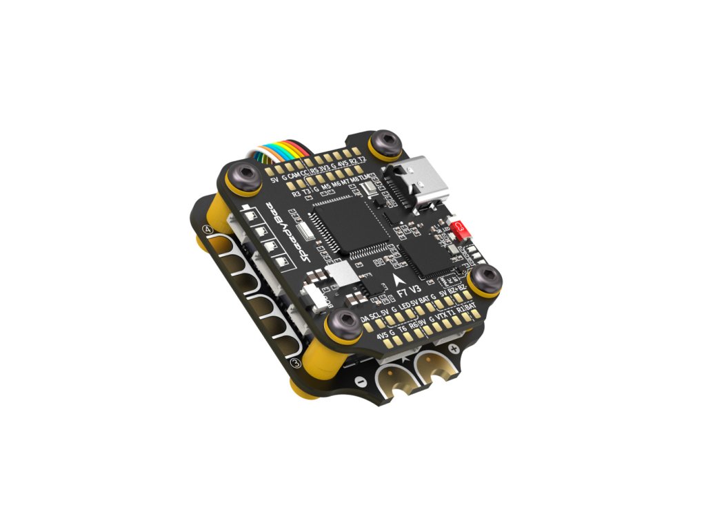 SpeedyBee F7 V3 BL32 50A 30x30 Stack Specifications: Product Name: SpeedyBee F7 V3 Flight Controller MCU: STM32F722 IMU (Gyro): BMI270 USB Port Type: Type-C Barometer: BMP280 OSD Chip: AT7456E chip BLE Bluetooth: Supported. Used for Flight Controller configuration, built-in a single 2.4 GHz Wi-Fi-and-Bluetooth combo chip. Flash FC Firmware Wirelessly: Supported. Please enter MENU > FC Firmware Flasher Download/Analyze Blackbox: Supported.Please enter MENU > Blackbox Analyzer DJI Air Unit Connection Way: Two ways supported - 6-pin connector or direct soldering. 6-pin DJI Air Unit Plug: Supported. Completely compatible with DJI O3/RunCam Link/Caddx Vista/DJI Air Unit V1, no wire is needed to be changed. Flash(for BlackBox): 500MB BetaFlight Camera Control Pad: Yes(CC pad on the front side) Power Input: 3S - 6S Lipo 5V Output: 10 groups of 5V output, three +5V pads and 1 BZ+ pad( used for Buzzer) on front side, and 6 +5V output included in the connectors on bottom side. The total current load is 2A. 9V Output: 2 groups of 9V output, one +9V pad on the front side and the other included in a connector on the bottom side. The total current load is 4A. 3.3V Output: Supported. Designed for 3.3V-input receivers. Up to 500mA current load. 4.5V Output: Supported. Designed for the receiver and GPS module even when the FC is powered through the USB port. Up to 1A current load. ESC Signal Pads M1 - M4 on the bottom side and M5-M8 on the front side. UART: 5 sets(UART1, UART2, UART3, UART4(For ESC Telemetry), UART6) ESC Telemetry UART: R4(UART4) I2C: Supported. SDA & SCL pads on the front side. Used for magnetometer, sonar, etc. LED Pad: Used for WS2812 LED controlled by Betaflight firmware. Buzzer: BZ+ and BZ- pad used for 5V Buzzer BOOT Button: Supported. [A]. Press and hold BOOT button and power the FC on at the same time will force the FC to enter DFU mode, this is for firmware flashing when the FC gets bricked. [B]. When the FC is powered on and in standby mode, the BOOT button can be used to control the LED strips connected to LED1-LED4 connectors on the bottom side. By default, short-press the BOOT button to cycle the LED displaying mode. Long-press the BOOT button to switch between SpeedyBee-LED mode and BF-LED mode. Under BF-LED mode, all the LED1-LED4 strips will be controlled by Betaflight firmware. RSSI Input: Supported. Named as RS on the front side. SmartPort: Not Supported Supported Flight Controller Firmware: BetaFlight(Default),INAV Firmware Target Name: SPEEDYBEEF7V3 Mounting: 30.5 x 30.5mm( 4mm hole diameter) Dimension: 41(L) x 38(W) x 8.1(H)mm Weight: 10.7g Product Name: SpeedyBee BL32 50A 4-in-1 ESC Firmware: SpeedyBee BL32 50A Configurator Download Link: http://github.com/bitdump/BLHeli/releases Continuous Current: 50A * 4 Burst Current: 55A(5seconds) TVS Protective diode: Yes Heat Sink: Yes External Capacitor: 1000uF Low ESR Capacitor(In the package) ESC Protocol: DSHOT300/600 PWM Frequency Range: 16KHz-128KHz Power Input: 3-6S LiPo Power Output: VBAT Current Sensor: Support (Scale=490 Offset=0) ESC Telemetry: supported Mounting: 30.5 x 30.5mm (4mm hole diameter) Dimension: 45.6x40x8.8mm Weight: 19.2g with heat sink