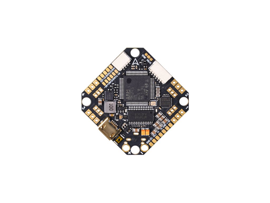 Toothpick F405 2-4S AIO Brushless Flight Controller 20A (BLHELI_32) V4-BMI270 Compared with the V3 version, the new FC board updates the F411 chip to F405. It can handle 20A of continuous current and up to 4S. The toothpick F405 2-4S AIO brushless flight controller also has BMI270 gyro. Suitable with Beta95X V3 and Beta95X V3 HD Digital VTX. Specifications of FC: CPU: STM32F405RGT6 Six-Axis: BMI270 Size: 26x26mm, whoop mounting pattern Firmware version: Batefight-BETAFPV405-4.2.X OSD: Built-in BetaFlight OSD (STM32 controls OSD chip over SPI in DMA mode) Receiver: Support Frsky XM/XM+ Receiver/ Futaba Receiver/ Flysky Receiver/ TBS Crossfire Receiver/DSMX Receiver Connecter: XT30, it also can be changed to XT60 if pilots need it. Weight: 5.76g Specifications of ESC: Support PWM, Oneshot125, Oneshot42, Multishot, Dshot150, Dshot300, Dshot600 Input voltage: 2S-4S Lipo Continuous current: 20A Peak current: 22A Firmware: BLHELI-32