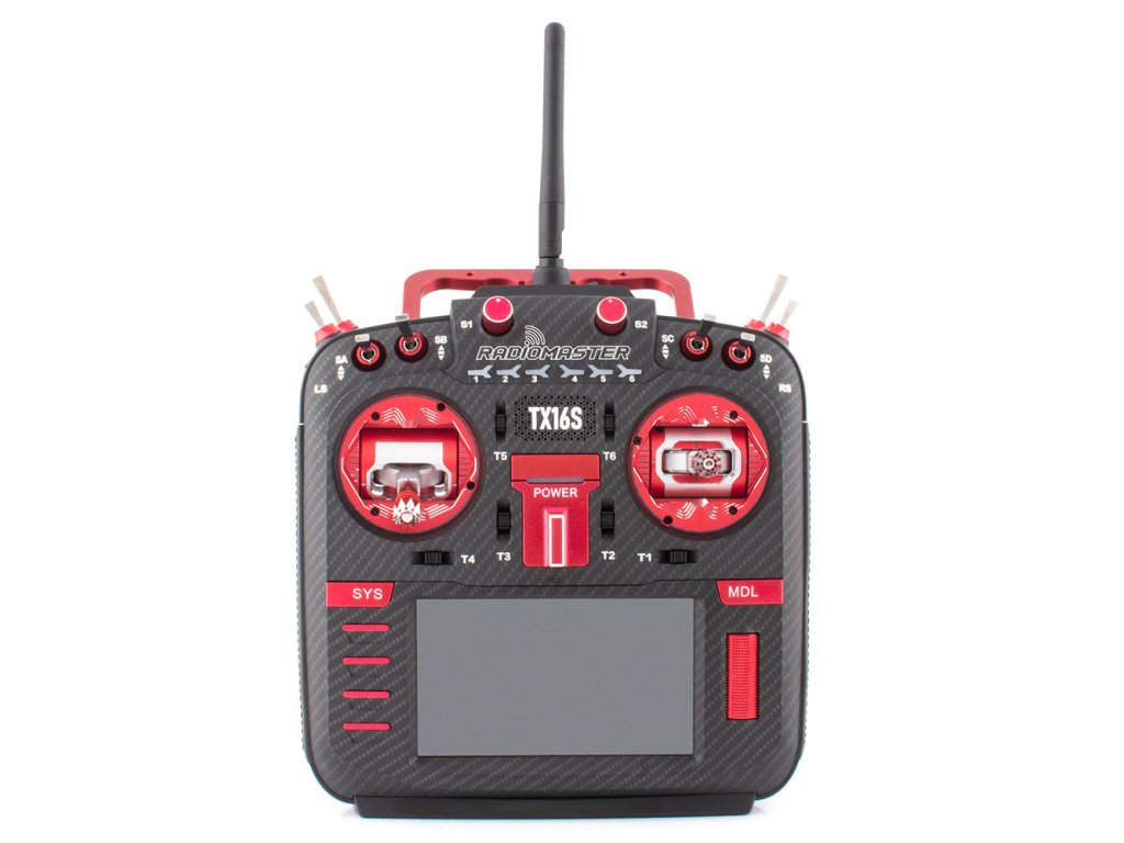TX16S MKII MAX AG01 Gimbal 4-in-1 The best just got better! Introducing the TX16S Mark II Max radio - the ultimate open-source radio. - Improved internal circuitry and optimized power supply. - New charge circuitry with integrated reverse-polarity protection. - Optimized charge IC now allows up to 2.2A internal USB-C charge current. - Rear-mounted audio jack provided headphone output. - V4.0 Gimbal improved centering and temperature stability (Same circuitry as AG01). - Optional high/low rear grips are included for improved ergonomics. - Improved S1/S2 knobs with clear center detents. - Improved LS/RS Sliders with smoother feel and better center detents. - Redesigned battery cover for improved battery access. - Retooled body shell with improved fit and finish. - Trainer socket changed to standard TRS 3.5mm socket. - Rear DIY Socket added for personalized mods. - Improved internal plastics for better longevity. - Available ELRS and 4in1 versions. - MAX units feature carbon look face plates and CNC finishing components and buttons. Item: TX16S Mark II Max Radio Controller Version: 4-in-1 (LBT) Gimbal: AG01 Hall Gimbal Color: Carbon Fiber Red Note: 4in1 LBT Version (Europe) is limited to LBT compliant protocols FrSKY X/X2 LBT, HoTT LBT and DSMX Specification: Size: 287x129x184mm Weight: 750g (without battery) Transmission frequency: 2.400GHz-2.480GHz Transmitter module: Option 1: Internal 4-in-1 multi-protocol module (CC2500 CYRF6936 A7105 NRF2401); Option 2: Internal ELRS (SX1280) Transmitting power: Internal 4-in-1 multi-protocol module : Max 100mw (protocol dependent); Internal ELRS : Max 250mw (transmitting power is adjustable) SD card: 256MB by default, 8GB maximum Antenna gain: 2db (transmit power adjustable) Working current: 400mA Working voltage: 6.6-8.4v DC Remote control distance:> 2km @ 22dbm Radio firmware: EdgeTX Module Firmware: Multiprotocol- Module (4IN1) -OR- ExpressLRS (ELRS) Channels: Up to 16 channels (depending on the receiver) Display: 4.3-inch TFT full-colour touch display with a resolution of 480 * 272 Gimbal: Option 1: V4.0 Hall sensor with Aluminium fascia; Option 2: AG01 CNC Hall sensor Module Bay: JR compatible module bay Upgrade method: Supports USB-C online / SD card offline upgrade