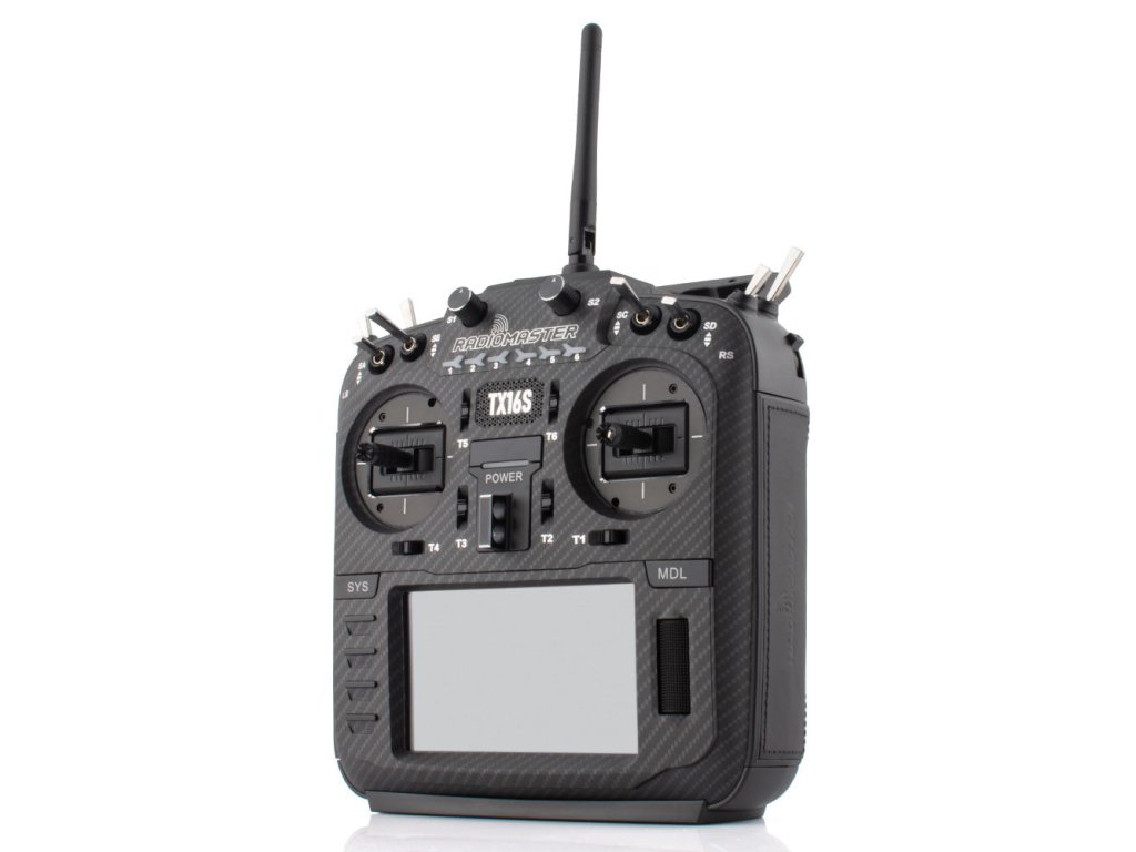 TX16S MKII MAX HALL V4.0 4-in-1 The best just got better! Introducing the TX16S Mark II Max radio - the ultimate open-source radio. - Improved internal circuitry and optimized power supply. - New charge circuitry with integrated reverse-polarity protection. - Optimized charge IC now allows up to 2.2A internal USB-C charge current. - Rear-mounted audio jack provided headphone output. - V4.0 Gimbal improved centering and temperature stability (Same circuitry as AG01). - Optional high/low rear grips are included for improved ergonomics. - Improved S1/S2 knobs with clear center detents. - Improved LS/RS Sliders with smoother feel and better center detents. - Redesigned battery cover for improved battery access. - Retooled body shell with improved fit and finish. - Trainer socket changed to standard TRS 3.5mm socket. - Rear DIY Socket added for personalized mods. - Improved internal plastics for better longevity. - Available ELRS and 4in1 versions. - MAX units feature carbon look face plates and CNC finishing components and buttons. Item: TX16S Mark II Max Radio Controller Version: 4-in-1 (LBT) Gimbal: V4.0 Hall Gimbal Color: Carbon Fiber Black Note: 4in1 LBT Version (Europe) is limited to LBT compliant protocols FrSKY X/X2 LBT, HoTT LBT and DSMX Specification: Size: 287x129x184mm Weight: 750g (without battery) Transmission frequency: 2.400GHz-2.480GHz Transmitter module: Option 1: Internal 4-in-1 multi-protocol module (CC2500 CYRF6936 A7105 NRF2401); Option 2: Internal ELRS (SX1280) Transmitting power: Internal 4-in-1 multi-protocol module : Max 100mw (protocol dependent); Internal ELRS : Max 250mw (transmitting power is adjustable) SD card: 256MB by default, 8GB maximum Antenna gain: 2db (transmit power adjustable) Working current: 400mA Working voltage: 6.6-8.4v DC Remote control distance:> 2km @ 22dbm Radio firmware: EdgeTX Module Firmware: Multiprotocol- Module (4IN1) -OR- ExpressLRS (ELRS) Channels: Up to 16 channels (depending on the receiver) Display: 4.3-inch TFT full-colour touch display with a resolution of 480 * 272 Gimbal: Option 1: V4.0 Hall sensor with Aluminium fascia; Option 2: AG01 CNC Hall sensor Module Bay: JR compatible module bay Upgrade method: Supports USB-C online / SD card offline upgrade