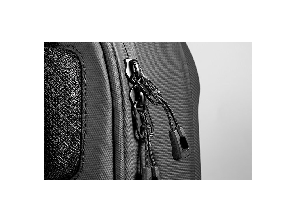 With its hardshell EVA construction and waterproof PU leather exterior, it offers resistance against scratches, water splashes, pressure, bumps, and drops. The adjustable buckles provide secure transportation, while the adjustable straps and cushioned back panel ensure comfortable wear. Additionally, the backpack features a customizable interior with Velcro-compatible fabric, a laptop compartment, and a mesh elastic foam cushion for shock absorption.