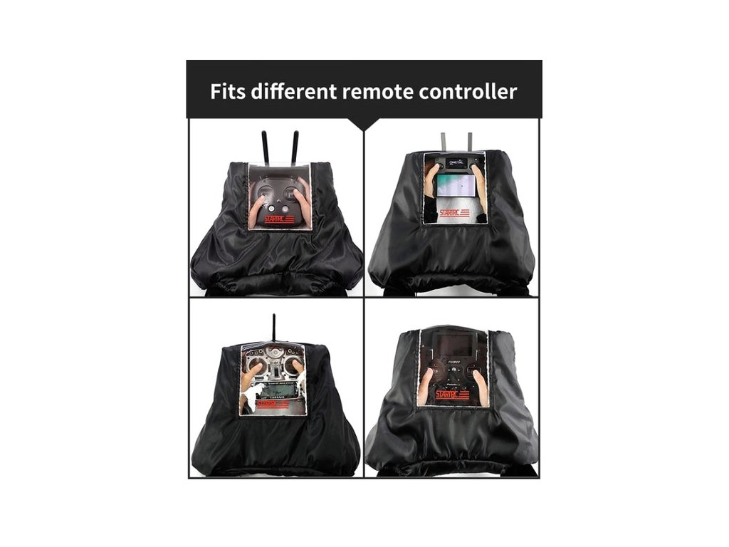 Universal Warm Gloves for RC transmitter The Universal Warm Glove for RC transmitters is designed to provide comfort and protection during remote control operation in cold weather conditions. Its universal design ensures compatibility with various RC transmitter models. Crafted from warm materials, it effectively shields hands and transmitter from cold temperatures, wind, and water, allowing for prolonged use without discomfort. Specifications: Brand Name: Model Number: 1106482 Color: Black Material: Twill, Fiber cotton Window material: Soft ABS Size: 35x59x46cm Transparent area size: 19x23cm Net weight: 244g Function: Cold-Proof, Wind-Proof Compatibility: DJI Mini 2/FPV/Air 2/Air 2s Package includes: 1x Universal Warm Glove for RC transmitter