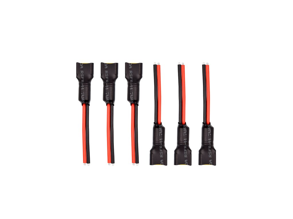 Whoop Cable Pigtail (XT60) Power Cable with XT60 connector is designed for 4-5S whoop drones. This cable is soldered with a capacitor specified at 25V/680μF, strategically protecting the ESC board and minimizing the defective rate resulting from instantaneous high voltage. Engineered to support power input from 4-5S, it is an ideal match for F4 AIO 20A FC and X-Knight 4'' quad setups, ensuring reliable and efficient performance. Specifications: Power: 4-5S Weight: 8.2g/pc Connector: XT60 Length: 80mm (Including the plug) Maximum Temperature resistance: 200°C Electrolytic Capacitor Specification: 25V/680μ Wire: 16AWG Heatproof Soft Silicone Cable Application: F4 AIO 20A FC- Whoop version, Toothpick version / X-Knight 4'' quad Package Includes: 6 x 4-5S Whoop Cable Pigtail (XT60)