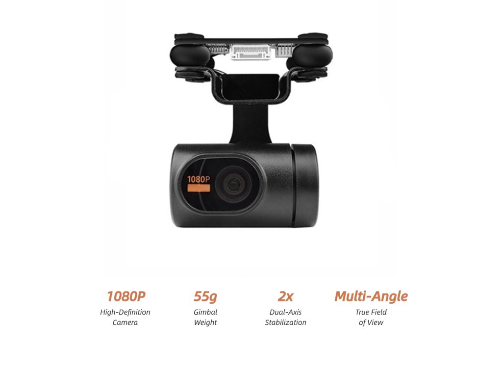 Kamera s rozlišením 1080P bez zkreslení poskytuje široké a jasné zorné pole a poskytuje stabilní záběry ve vysokém rozlišení. Dvouosý stabilizátor snižuje vibrace a zajišťuje plynulý a stabilní obraz, takže je ideální pro letecké a mobilní aplikace.