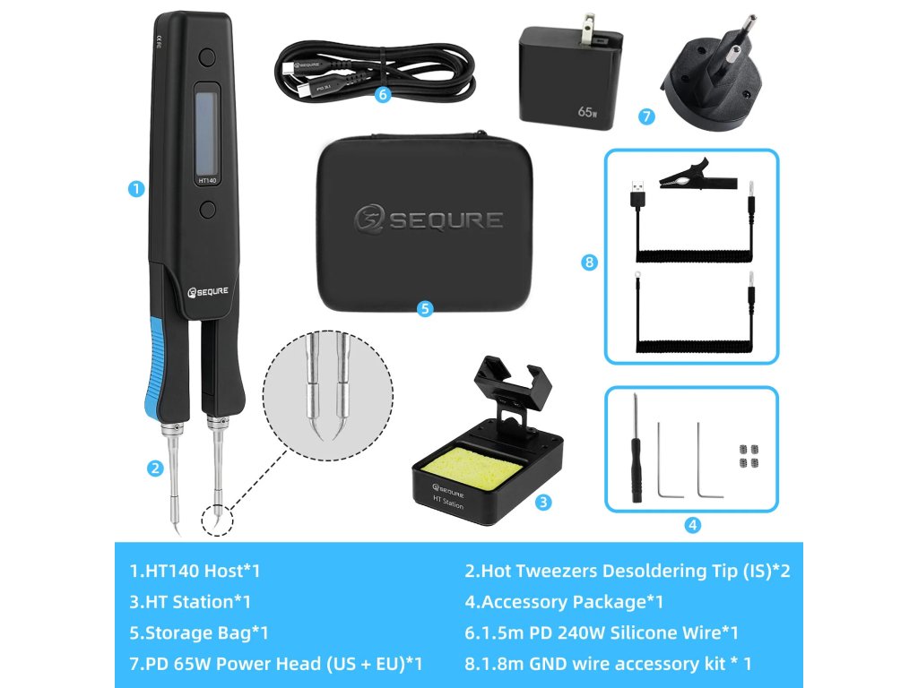 SEQURE HT140 je kombinace horké pinzety a páječky, kterou lze nezávisle ovládat pro jednostranný ohřev. Lze ji použít jako páječku při instalaci pájecího hrotu. Při nastavení na oboustranný ohřev se z ní stává horká pinzeta, která usnadňuje odpájení SMD součástek.