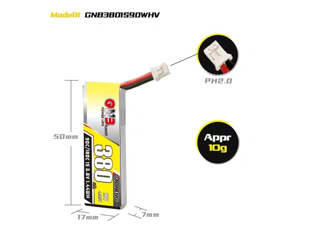 Battery GNB GAONENG LiHV 1S 3.8V 380mAh 90C PH2.0 Cabled