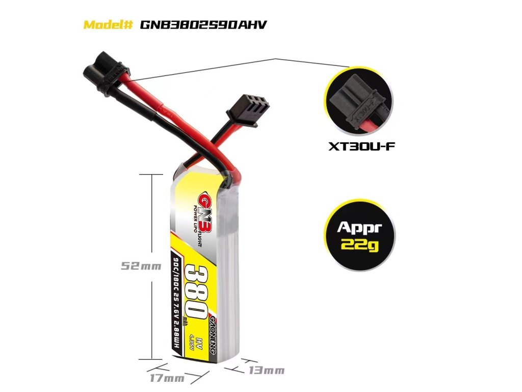 Battery GNB GAONENG LiHV 2S 7.6V 380mAh 90C XT30