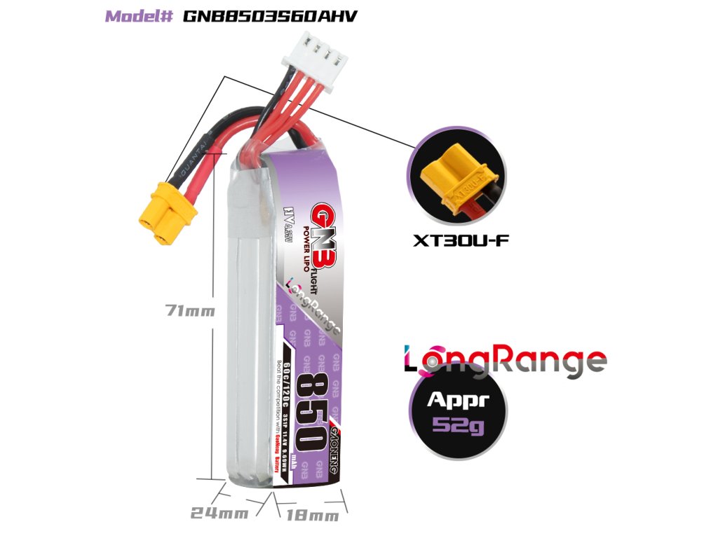 Battery GNB GAONENG LiHV 3S 11.4V 850mAh 60C XT30