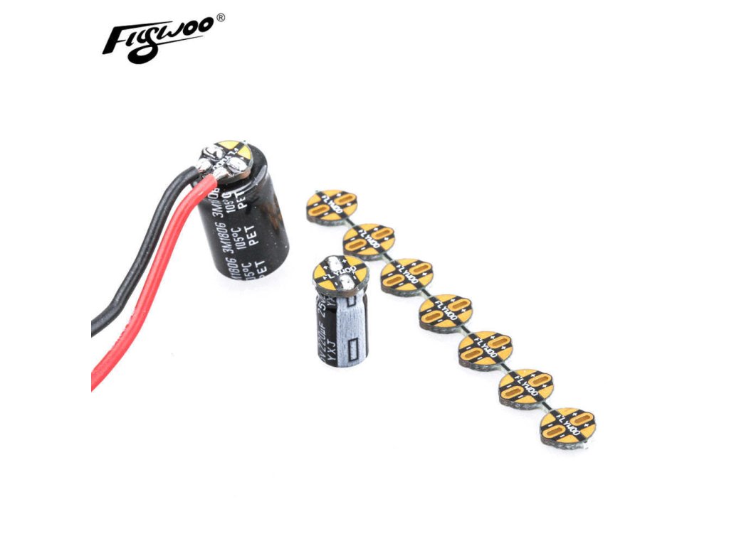 Moduł kapy FLYWOO Cap PCB FLYWOO Cap PCB to sprytne rozwiązanie montażowe dla budowniczych dronów FPV, którzy chcą bezpiecznie i schludnie instalować kondensatory w ciasnych przestrzeniach. Niezależnie od tego, czy wymieniasz uszkodzony kondensator po awarii, czy przenosisz go z zatłoczonych padów baterii — te ultracienkie płytki umożliwiają szybkie i bezproblemowe lutowanie przewodów do kondensatorów. Dzięki niskiej wadze zaledwie 0,1 g i kompaktowym wymiarom 7,7×1,0 mm możesz łatwo zamontować kondensatory w dowolnym miejscu ramy, nie zwiększając jej masy. Idealne do niestandardowych konstrukcji i napraw w terenie, FLYWOO Cap PCB oferuje elastyczność i estetyczne rozwiązanie tam, gdzie liczy się miejsce i czas. Dane techniczne: Marka: FLYWOO Model: Cap PCB Wymiary: 7,7 mm × 1,0 mm Waga: 0,1 g Funkcja: Pomoc lutownicza do okablowania kondensatorów Zawartość opakowania: 7 × FLYWOO Płytka PCB do kondensatorów Uwaga: Kondensatory i przewody nie są dołączone