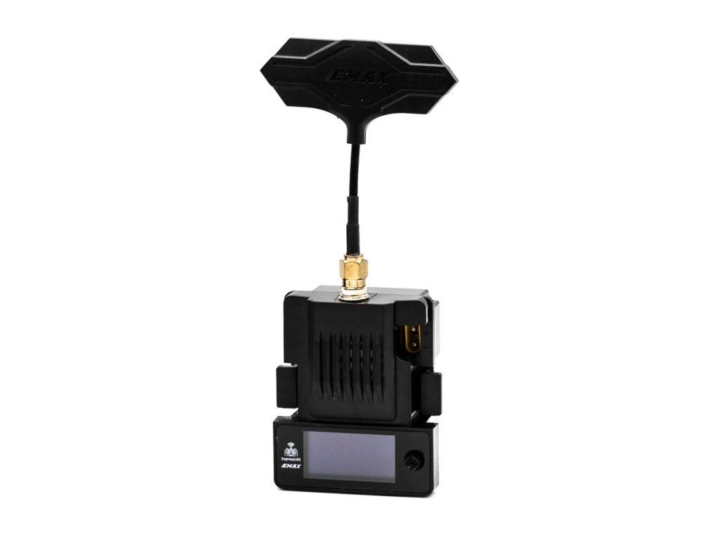 . Emax Aeris Link Micro TX 2.4G (z wyłączeniem odbiornika) Emax Aeris TX to moduł rozszerzenia nadajnika ELRS 2,4 GHz dla dużych szybów radiowych JR. Moduł jest kompatybilny z radiotelefonami z oprogramowaniem OpenTX lub EdgeTX. ELRS jest obecnie jedną z najbardziej zaawansowanych transmisji RC. Oferuje niezawodne połączenia dalekiego zasięgu, wysoką częstotliwość odświeżania, regulowaną moc, aktualizacje przez Wi-Fi i wiele więcej. Emax Aeris posiada 1,29-calowy wyświetlacz OLED o rozdzielczości 64x128px. Moduł ELRS można skonfigurować za pomocą joysticka, więc nie ma potrzeby używania skryptów LUA. Aeris TX posiada również złącze XT30 do zasilania zewnętrznego akumulatora 2-4S, co wydłuża żywotność baterii w radiu. Jest to szczególnie przydatne w przypadku długich lotów na duże odległości i dużych mocy nadawania. Kolejną zaletą modułu jest złącze USB-C, które służy do łatwej aktualizacji oprogramowania układowego lub przesyłania danych telemetrycznych do komputera w trybie lotniska. Specyfikacja: Pasmo częstotliwości: ISM 2.4GHz Maksymalna moc: 1000 mW Napięcie wejściowe XT30: 5-21V (2-4S Lipo) Złącze antenowe: RP-SMA Wyświetlacz: 1.29" OLED 64x128px Rozmiar: 72x63x35mm Waga: 59g (bez anteny)