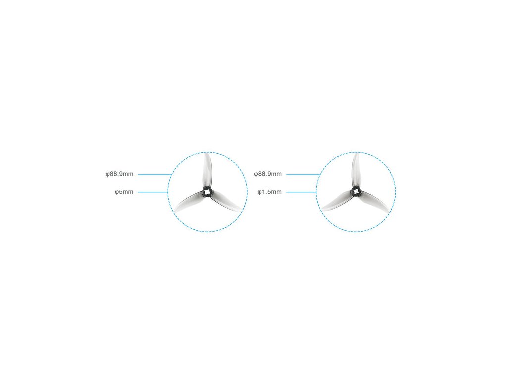 . 3-łopatowe śmigła Gemfan 3520 (wał 1,5-5 mm) Trójłopatowe śmigła HQ 3520 o średnicy 3,5 cala są wykonane z cienkiego i wytrzymałego materiału PC. Są one odpowiednie dla wersji TWIG XL FPV 2021 i silników bezszczotkowych 1404 3800KV. Pakiet zawiera adaptery piasty T-mount z otworem środkowym 1,5 mm, co zwiększa ich użyteczność w różnych konfiguracjach silników. Specyfikacje: Pozycja: 3-łopatowe śmigła Gemfan 3520 Średnica śmigła: 3,5 cala Łopaty: 3 Materiał: PC Skok: 2 Kolor: przezroczysty szary Wał: 1,5 mm/5 mm Waga: 1,92 g/szt. Pakiet: 2 x 3-łopatowe śmigło 3520 HQ CW 2 x 3-łopatowe śmigło 3520 HQ CCW 4 x adapter wkładki piasty T-mount do otworu środkowego 1,5 mm 8 x Śruby M2 * 7