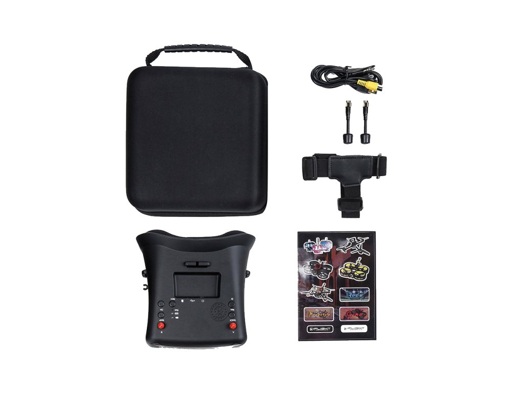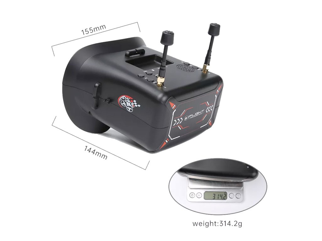 . Gogle iFlight FPV z funkcją DVR Cechy: - Z funkcją DVR nagrywania wideo, i zapisywania zdjęć. - 4,3-calowy wyświetlacz LCD o wysokiej jasności, specjalnie dostosowany do wyścigów FPV lub modeli samolotów. - Wbudowany superczuły 40-kanałowy odbiornik 5,8 GHz, zwłaszcza z pasmem RaceBand obejmującym częstotliwość wyścigową. - Posiada zaawansowaną funkcję automatycznego wyszukiwania i pokazuje częstotliwość roboczą na ekranie. - Wbudowany akumulator 3,7 V/2000 mAh, każde pełne naładowanie wystarcza na około 3,5 godziny pracy. Czas pracy 3,5 godziny. - Ergonomiczna konstrukcja. - W 92% przezroczysty obiektyw, bez zniekształceń, bez rozmycia na ekranie; - Lekka waga 295 g z 3-godzinną baterią 2000 mAh. Specyfikacja: Częstotliwość: 40CH 5.8GHz Wbudowana bateria: 3.7V/2000mAh Bateria Rozmiar: 155*144*113mm Waga: 295g z baterią 3.7V 2000mAh Pałąk na głowę: 3-stronny regulowany pałąk na głowę Rozmiar ekranu: 4,3 cala Rozdzielczość: 800 * 480 (bez rozmycia po powiększeniu przez obiektyw) Jasność: 300cd/m2 ze specjalnym podświetleniem LED o wysokiej jasności do FPV na zewnątrz Karta TF: obsługa do 32G Pakiet zawiera: 1 x Gogle FPV 2 x antena FPV Albatross RHCP 5.8GHz RP-SMA 1 x kabel wideo 1 x kabel USB do ładowania 1 x futerał