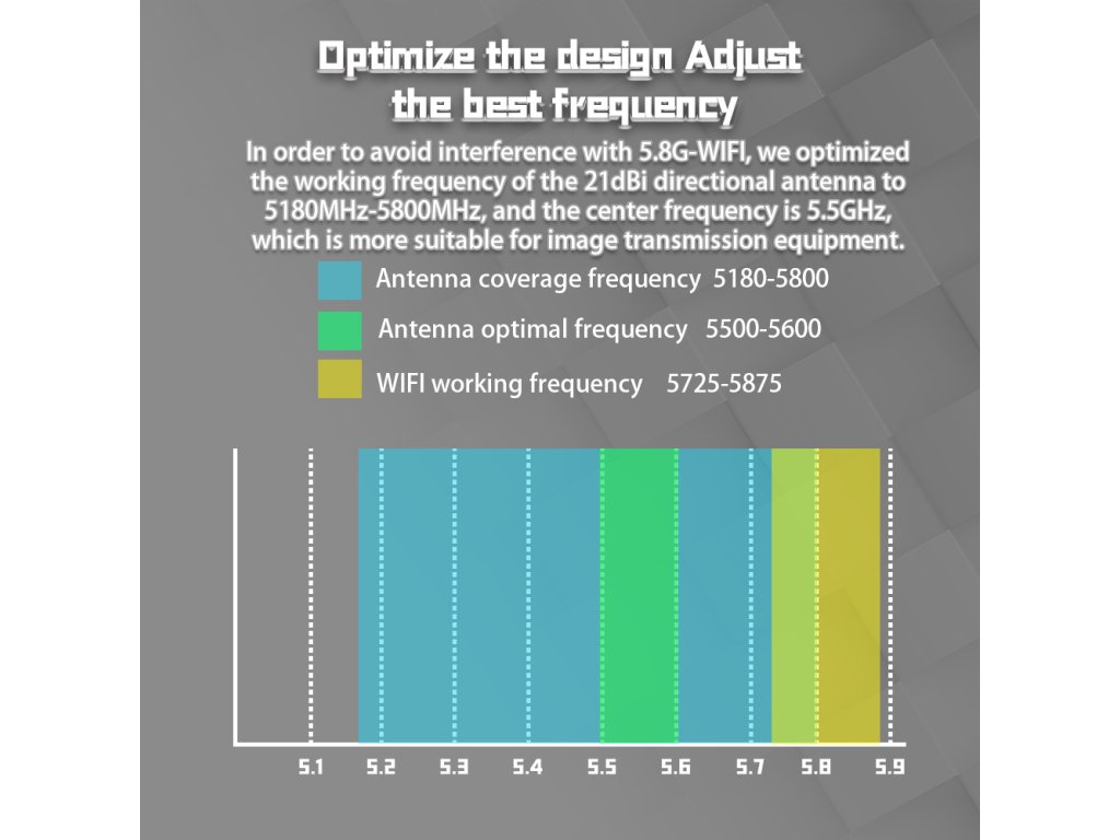 . Antena kierunkowa SMA-AAT 21dB Antena kierunkowa Maple Patch Antenna 5.8G 21dBi jest oparta na najnowszej generacji klasycznej anteny 20dBi do pracy na dużych odległościach. Może być używana jako antena zewnętrzna. Najlepiej nadaje się do przesyłania obrazów z RASPberry PI HD, SIqi HM30 HD, a także obrazów analogowych o dużej mocy, takich jak RUSHFPV MAX SOLO i innych obsługujących kanał operacyjny 5G o niskiej częstotliwości, aby uniknąć zakłóceń z zakresu WI-FI. Optymalna częstotliwość pracy to 5500-5600 MHz. Specyfikacje: Częstotliwość: 5.5G Wzmocnienie: 21dBi Szerokość pasma: 5180-5800 MHz Złącze: SMA Rozmiar: 168mm x 168mm x 15mm Waga: 162g Zestaw zawiera: 1x antena kierunkowa SMA-AAT 21dB