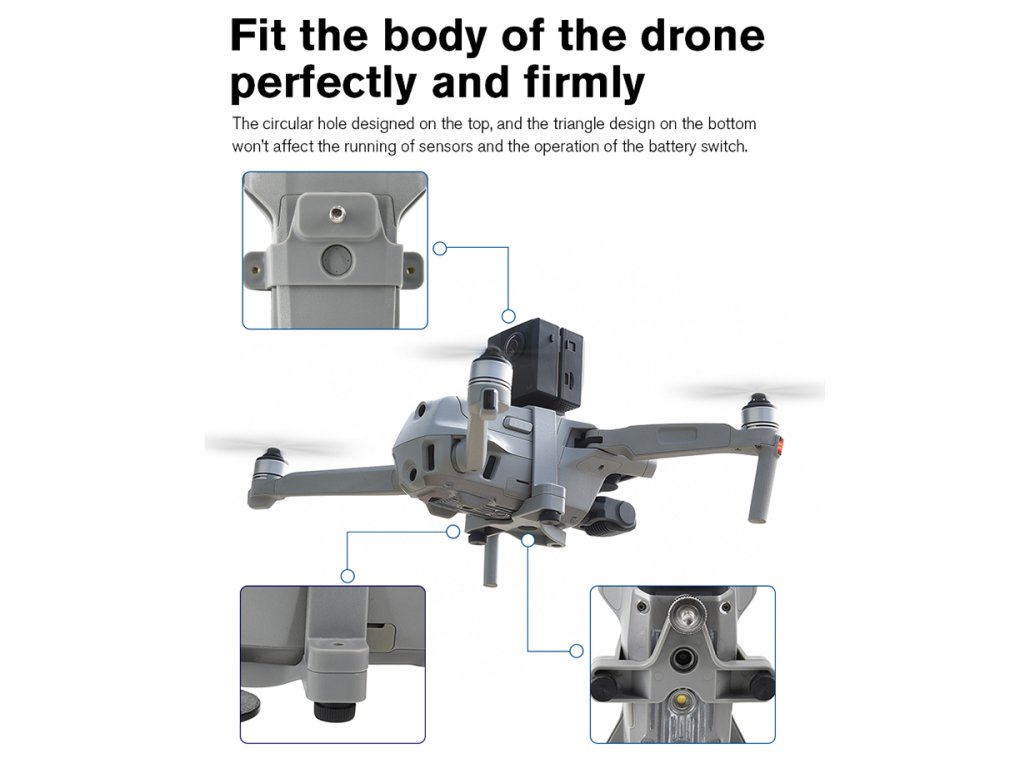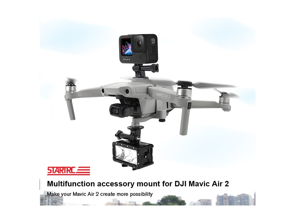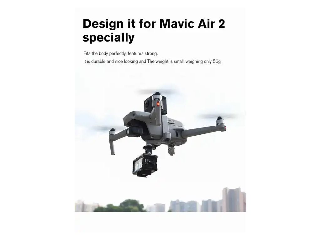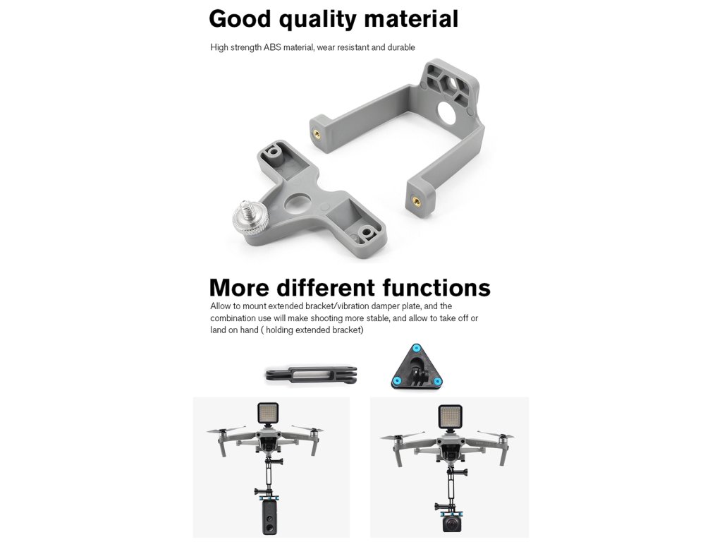 . Wielofunkcyjny stały uchwyt do kamery dla DJI Air 2/2S Wielofunkcyjne mocowanie kamery zostało zaprojektowane specjalnie dla DJI Air 2/2S. Uchwyt umożliwia mocowanie urządzeń na górze lub na dole drona. Zawiera śrubę 1/4" i adapter, umożliwiając montaż świateł LED, kamer GoPro i innych powiązanych akcesoriów. Nie zakłóca działania czujników drona ani przełącznika baterii. Materiał: ABS Waga netto: 56 g Kompatybilność: dla DJI Air 2/2S Rozmiar górnego mocowania: 82,6x65,4x36,35 mm Rozmiar dolnego mocowania: 82,6x49,6x15mm Kolor: szary