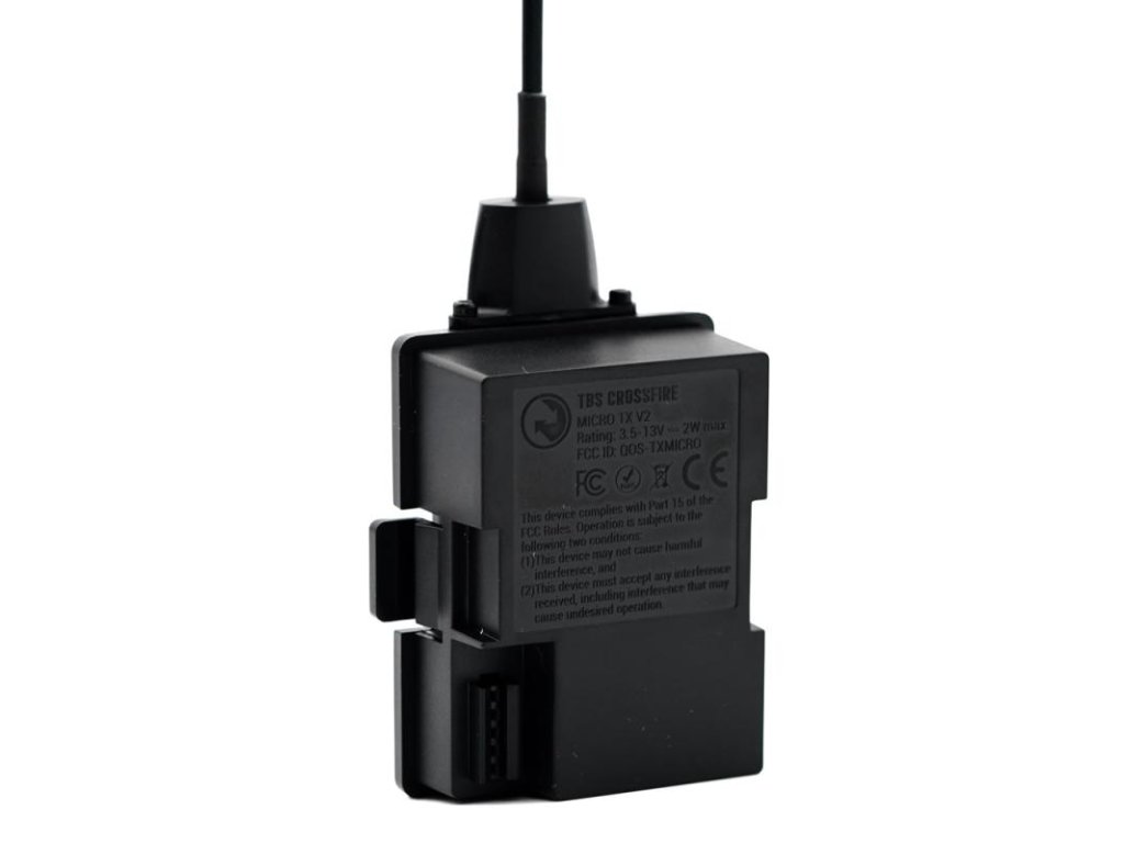. TBS Crossfire Micro TX V2 Cechy: - Adaptacyjny i wytrzymały system zdalnego sterowania samolotem o dużym zasięgu - Odporny na hałas na pokładzie - Dwukierunkowe łącze komunikacyjne z parametrami łącza i telemetrią w czasie rzeczywistym - Samoregeneracja i przeskok częstotliwości (DSSS, FHSS) - Adaptacyjna kontrola przepustowości i optymalizacja zasięgu - Bardzo łatwe łączenie i konfiguracja za pomocą wbudowanego wyświetlacza R/C - Niskie opóźnienia, częstotliwość aktualizacji 150 Hz (3x szybciej niż typowe łącza RC) zapewniają doskonałe wrażenia z jazdy. - Dwa modele odbiorników: 8-portowy Diversity Rx, 4-portowy Mini-odbiornik (waga 4g!) - 8- lub 12-kanałowe wyjście przez SBUS/PPM/CRSF na obu odbiornikach - Możliwość latania z wieloma przyjaciółmi w tym samym czasie (10 lub więcej) - Możliwość wyboru mocy RF od 25 mW do 1 W (obowiązują ograniczenia lokalne) - Dioda LED nadajnika pokazuje stan połączenia - Mikroodbiornik dla mniejszych dronów - Aktualizacje oprogramowania przez łącze RF Specyfikacja: Pasma częstotliwości: 868 MHz (UE) / 915 MHz (USA, Azja, Australia) Napięcie wejściowe: 6.0 - 13V Złącze: USB-C Pobór mocy: 1,1W (@10mW) - 2W (@100mW) Wymiary: 65 x 48 x 22 mm (rozmiar modułu JR) Waga: 48 g Opakowanie zawiera: 1x TBS Crossfire Micro Transmitter (moduł JR) 1x TBS Crossfire Stock Tx Antenna V2