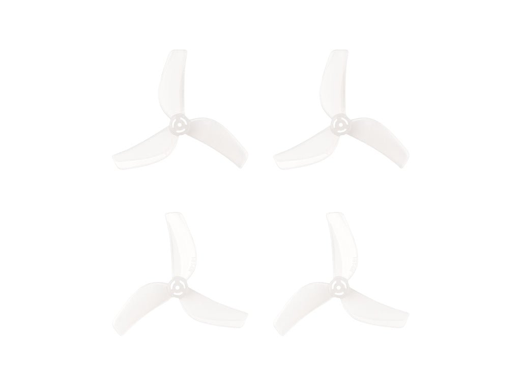 Propellers Gemfan 1614-3 PC Clear 1.0mm (2CCW+2CW) Gemfan 1614-3 is a high-performance 40 mm three-blade propeller designed for micro and whoop drones. Made from durable polycarbonate, it offers ultra-light weight, fast throttle response, and smooth, precise control. These propellers are optimized for efficient flight and excellent handling on modern micro builds. Features: - Ultra-light design for agile and responsive flight - Smooth and stable performance with precise control - Low inertia for quick throttle response - Optimized for micro whoop drones and indoor flying Specifications: Material: Polycarbonate (PC) Propeller diameter: 40 mm Pitch: 1.4 inch Blades: 3 Center thickness: 4 mm Max prop width: 7.7 mm Shaft hole diameter: 1.0 mm Weight: 0.24 g (per propeller) Recommended takeoff weight: 40 g Color: Clear Package Includes: 2CWx Propellers Gemfan 1614-3 PC Clear 1.0mm 2CCWx Propellers Gemfan 1614-3 PC Clear 1.0mm