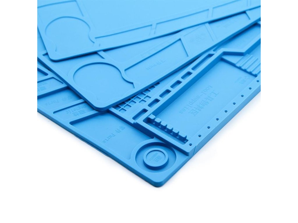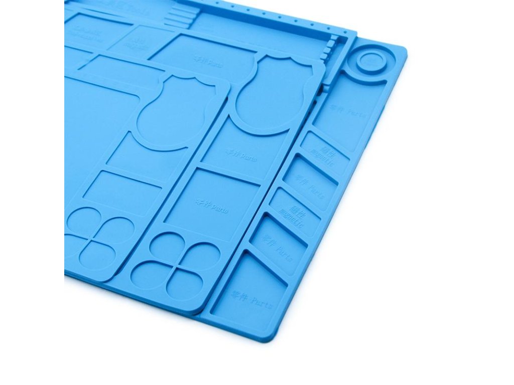 Zcela nová vysoce kvalitní tepelná izolace a silikonová podložka šetrná k životnímu prostředí, odolnost vůči vysokým teplotám 500 ℃. Magnetické části s drážkami pro šrouby, antistatické, antikorozní. Široce používané při údržbě IC základních desek a umístění malých nástrojů, úložných materiálů atd.